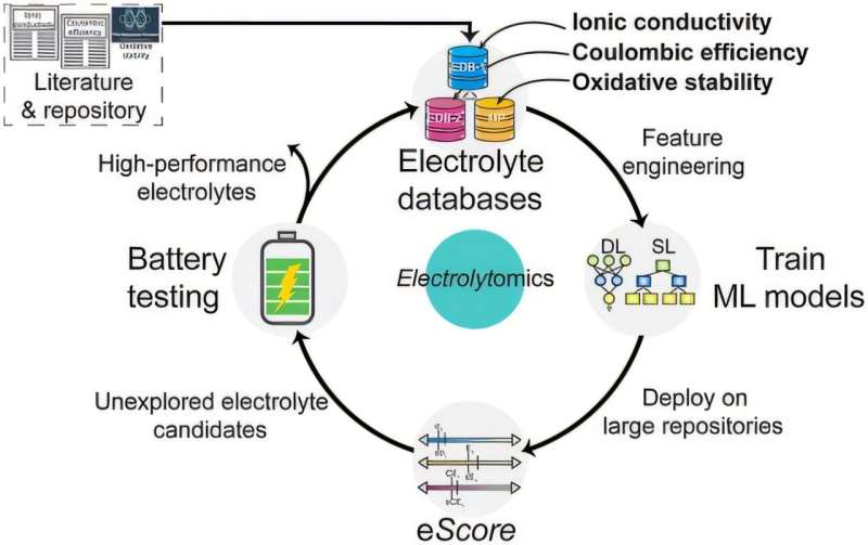 该团队从锂离子电池研究早期的250篇研究论文中收集了数据集,并利用人工智能计算出不同分子的“eScore”。eScore平衡了这三个标准,识别出同时满足所有三个条件的分子。